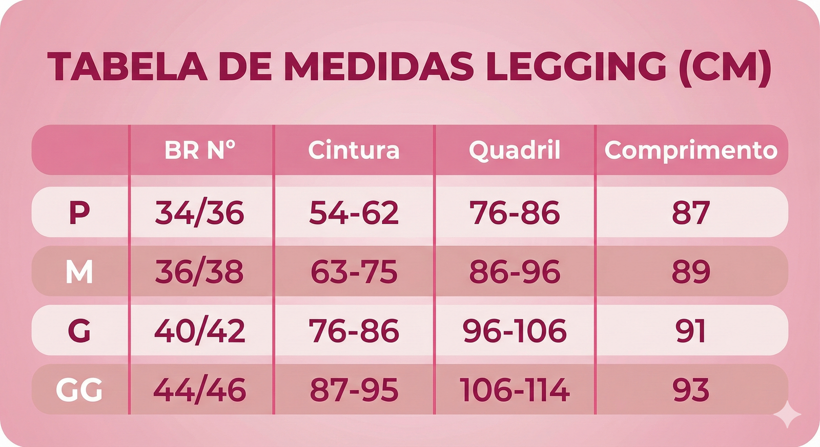 📏 Tamanhos disponíveis: P (34/36) M (36/38) G (40/42) GG (44/46)